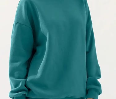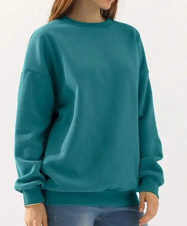 Teal sweatshirt: great pop of color with neutral bottoms (black, white, denim). Teal pairs nicely with black or blue jeans and sneakers for a casual outfit.