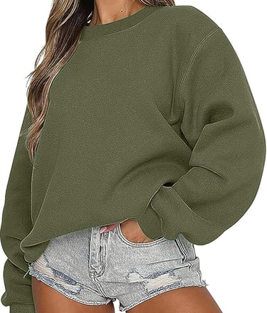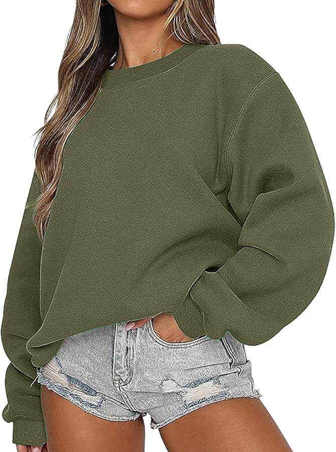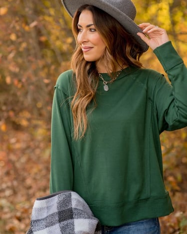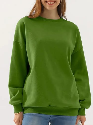 Green sweatshirt: wear with light-wash or dark pants, style with boots or sneakers for a seasonal look.