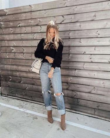 Black sweatshirt: pairs easily with jeans or leggings for a minimalist look.